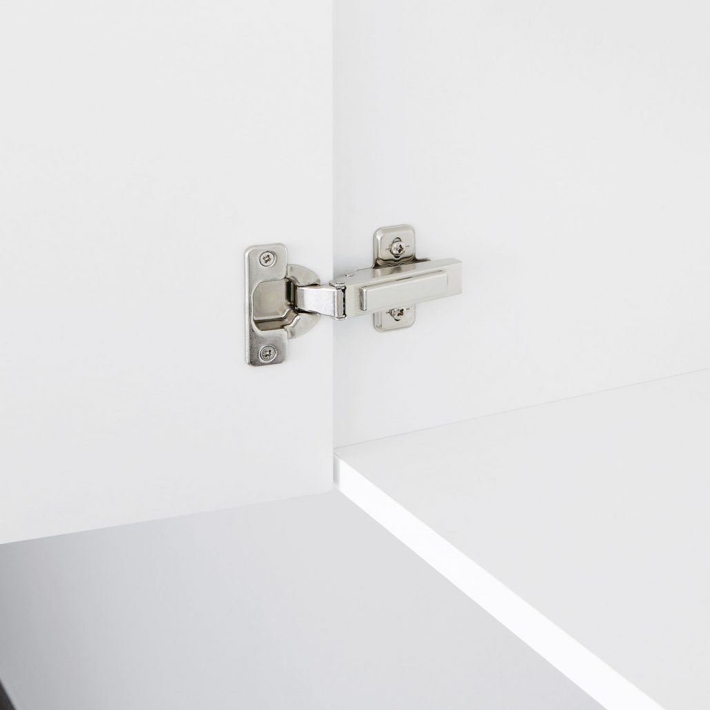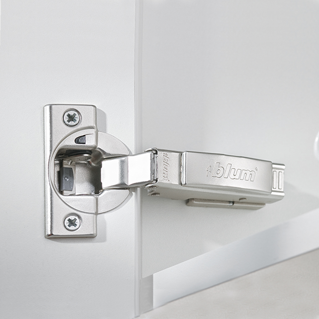 Zu allen Küchenschränken erhalten Sie selbstschließende Marken-Clipscharniere mit einem Öffnungswinkel von 107 Grad.