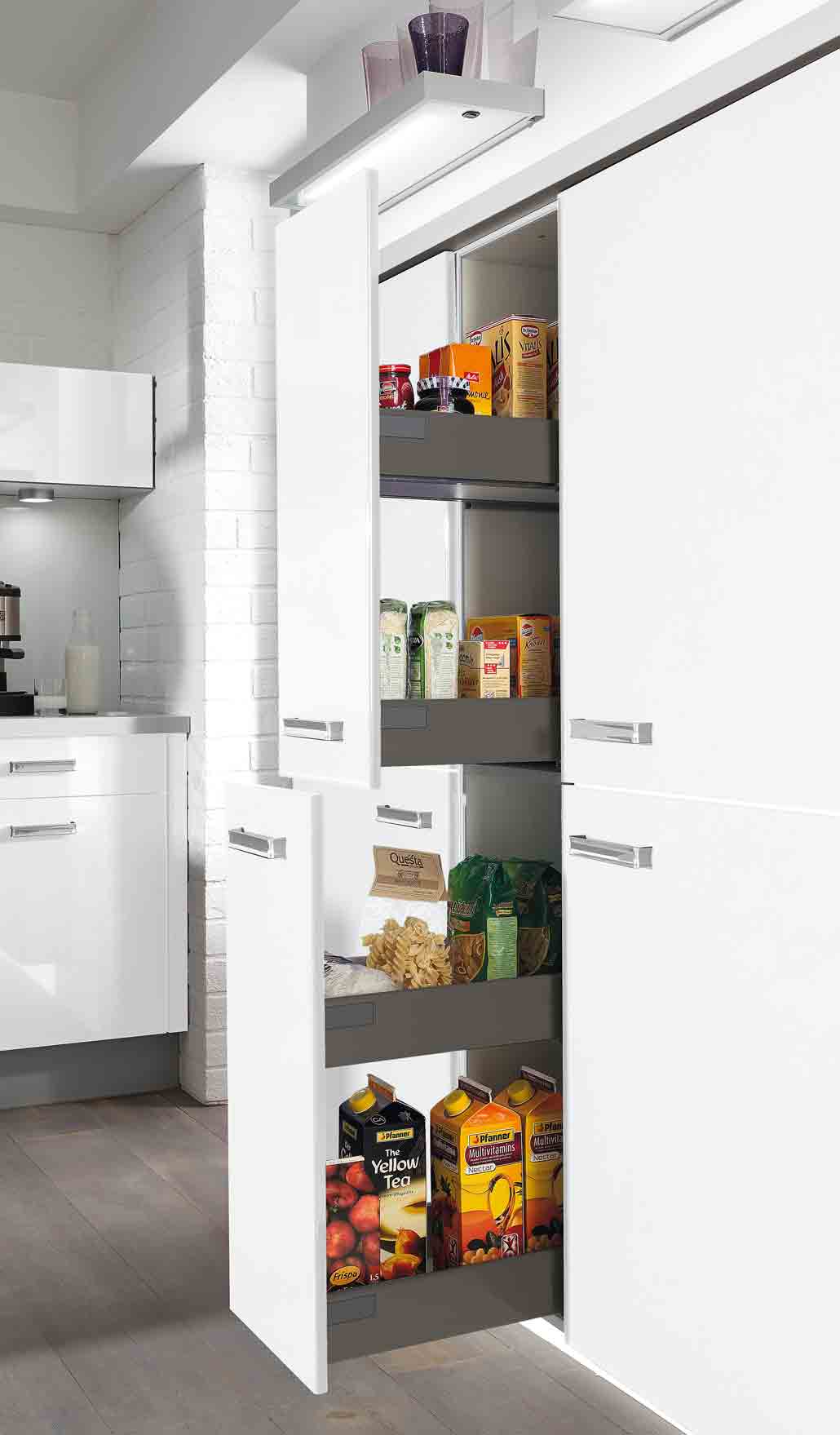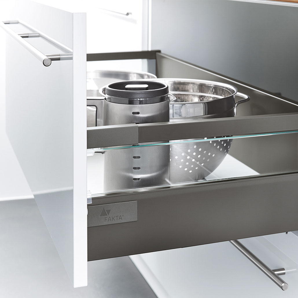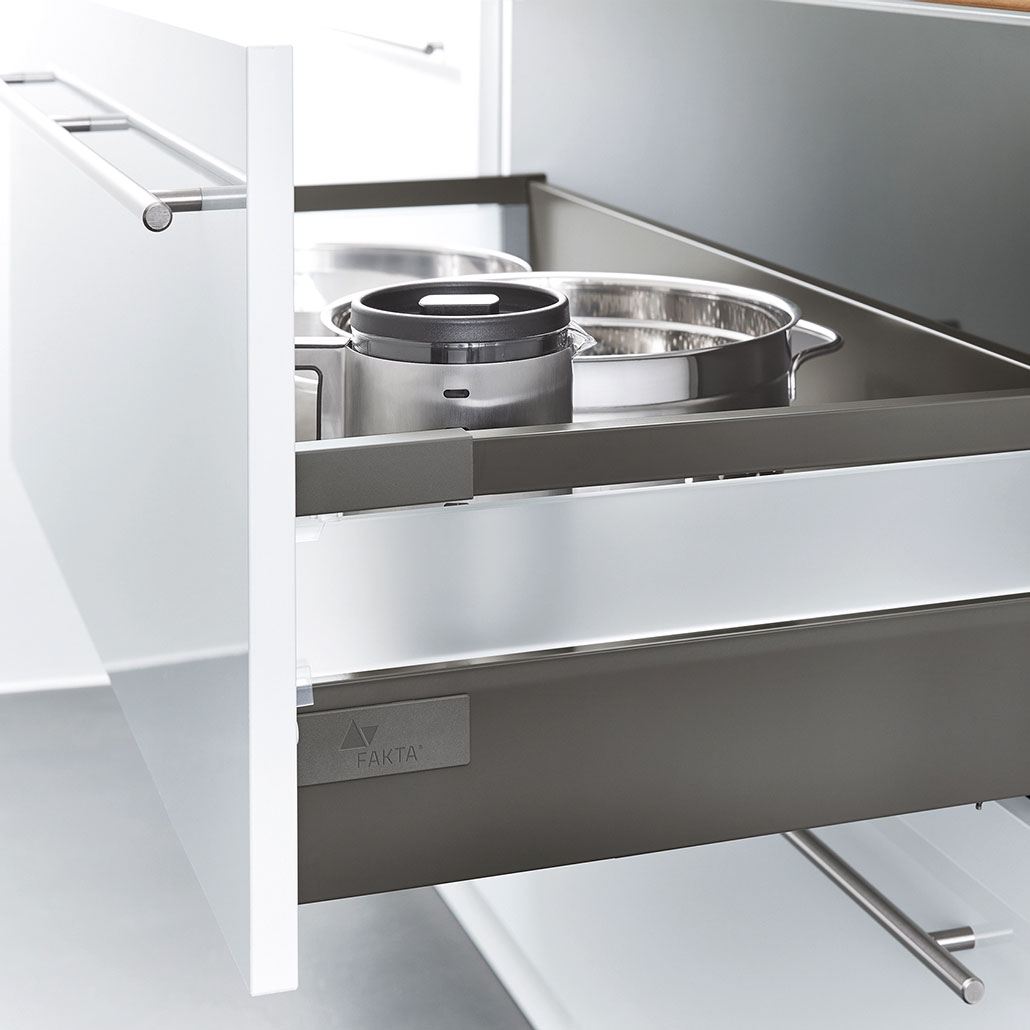 Genügend Stauraum ist bei der Küchenplanung ein wichtiges Kriterium. Die Möglichkeiten der Ausstattung reichen bei FAKTA vom wahren Platzwunder über einen ausgeklügelten Bedienkomfort bis hin zu innovativen technischen Features.