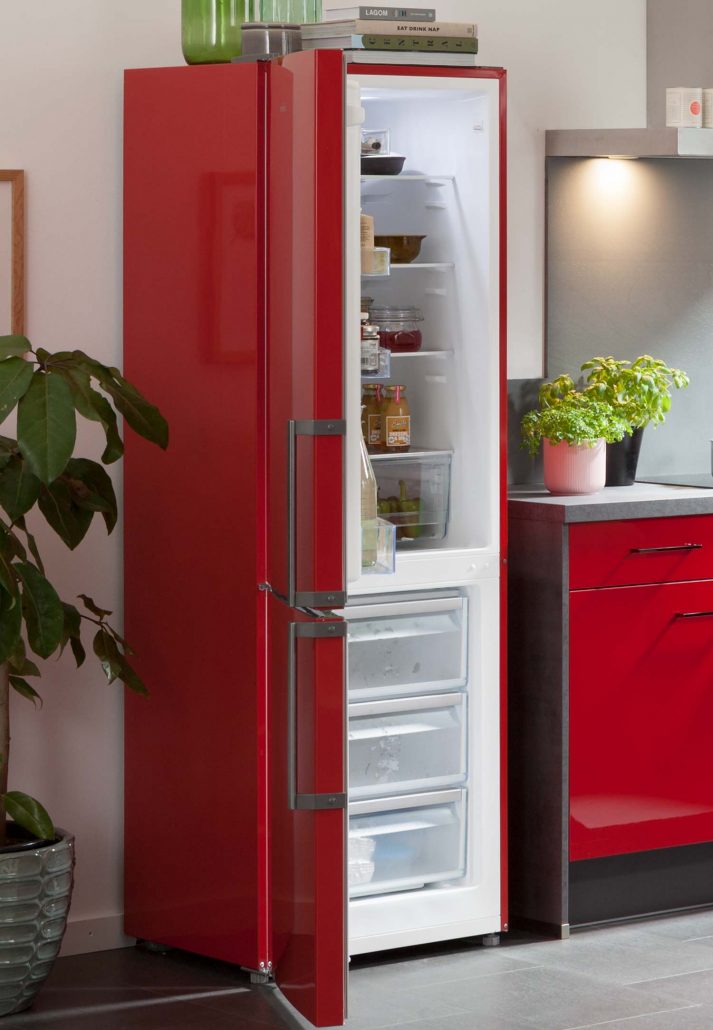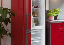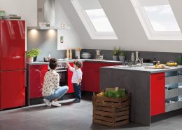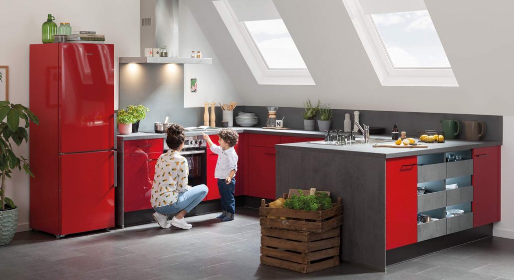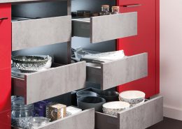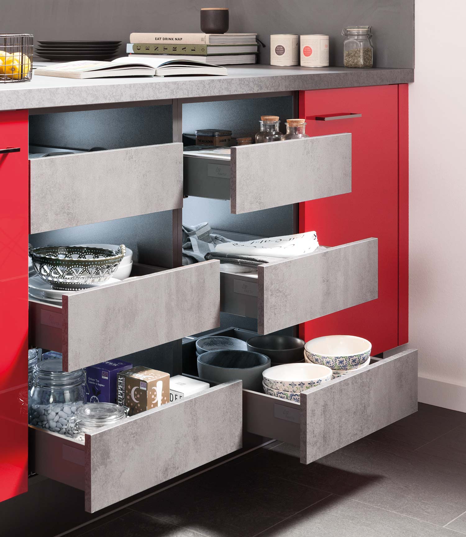 Rot Hochglanz + Beton-Optik Schiefer dunkelgrau